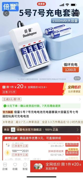 倍量充电套装。低价处理!4槽充电器+4节5号电池!...