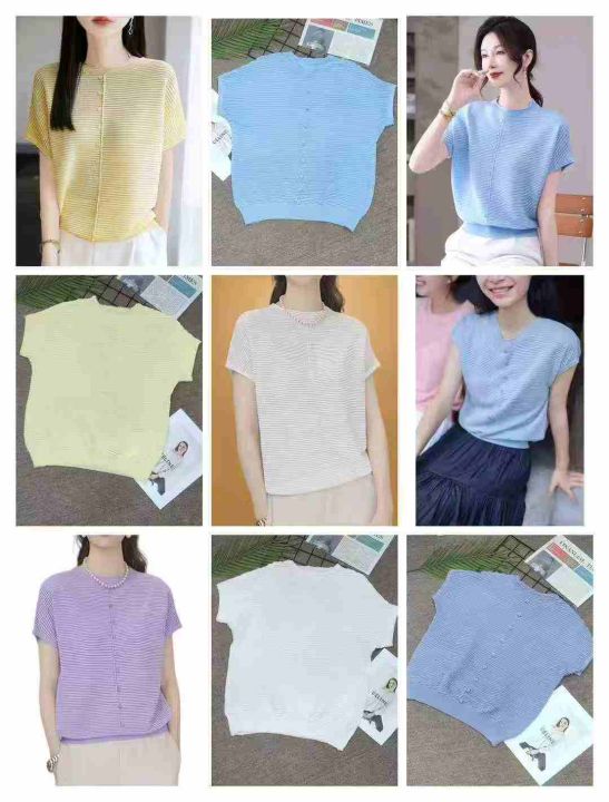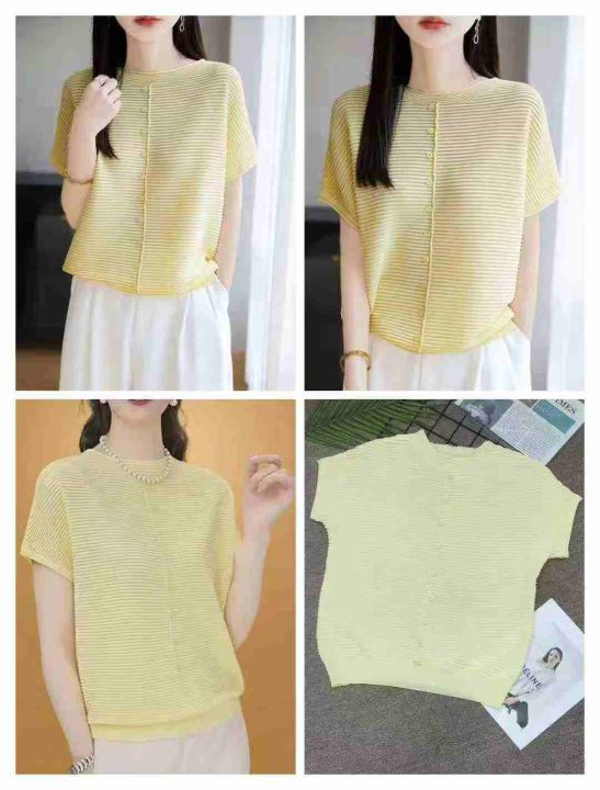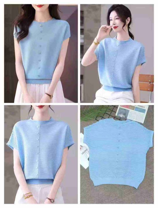2025年夏季新款时尚波浪纹针织短袖女宽松洋气遮肉显瘦百搭短袖上衣,品质非常好,独立包装,均码,700件,清7.9,分➕1