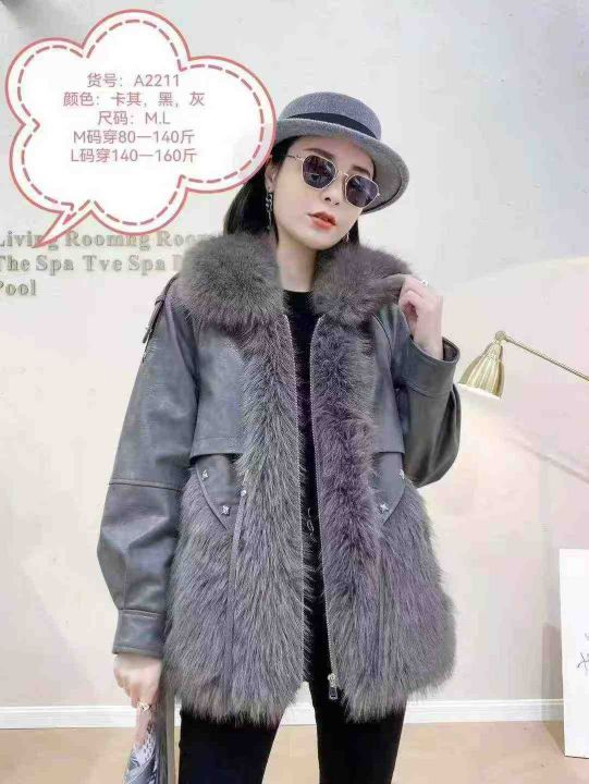高端皮草皮衣系列~~~[太阳]95元清60件!新款狐狸毛皮草外套年轻款短款皮毛一体高级感名媛轻奢大衣!可10件起小份!图片所有款发货,欧货芭提雅高端皮衣