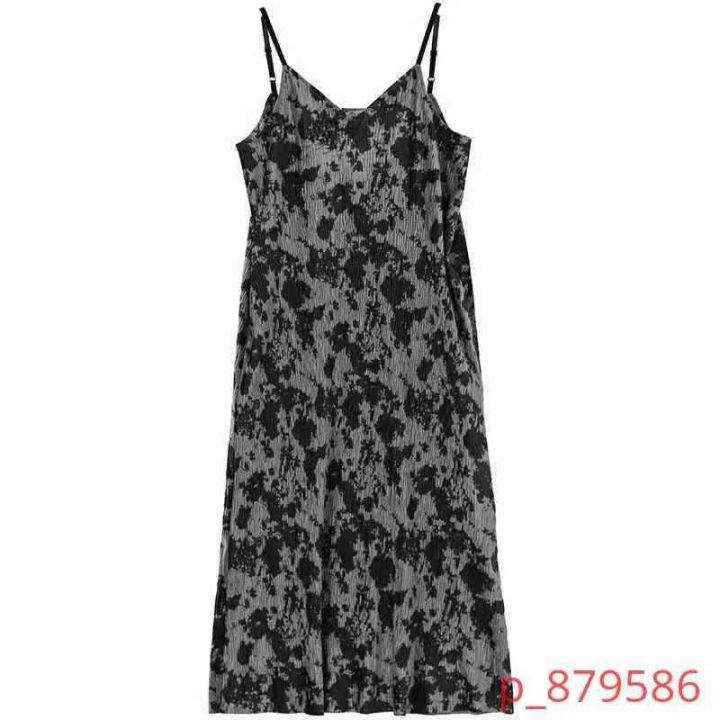 淘宝在售爆款水墨碎花丝绒宽松显瘦压褶吊带裙子,中长...
