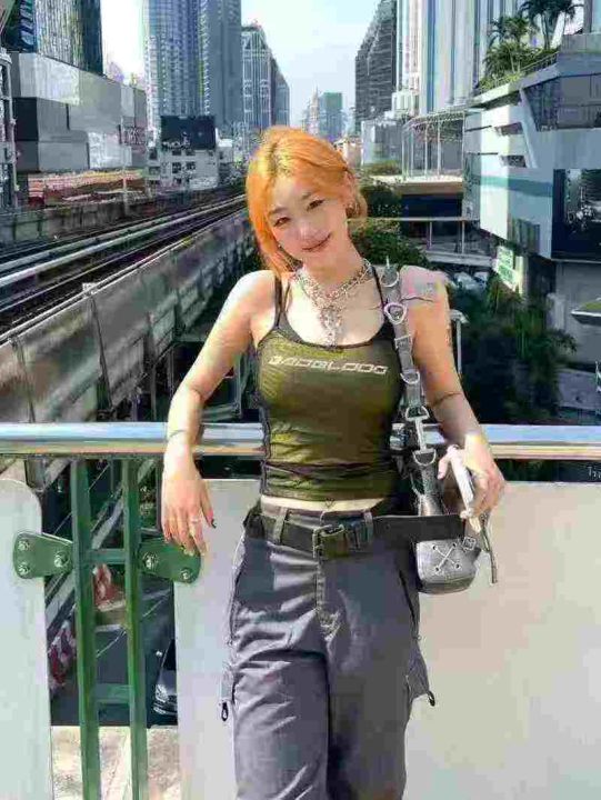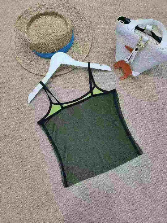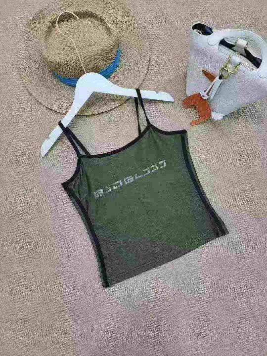 [月亮]:美式荧光绿烫钻辣妹吊带