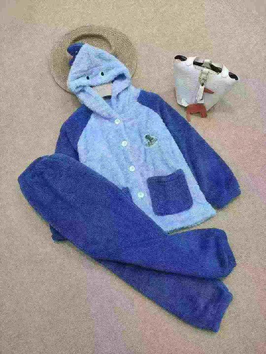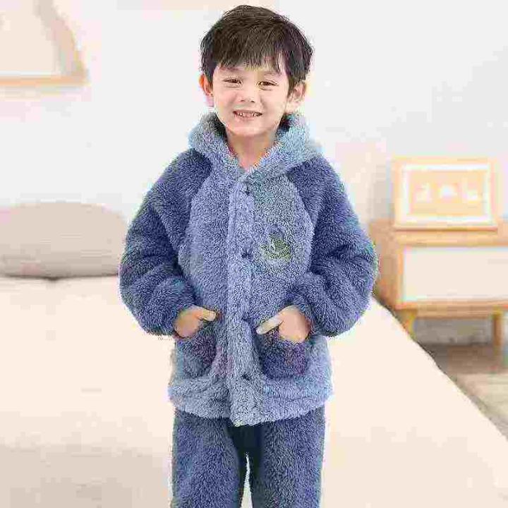 [月亮]:潮童中大童法兰绒连帽纽扣开衫套装