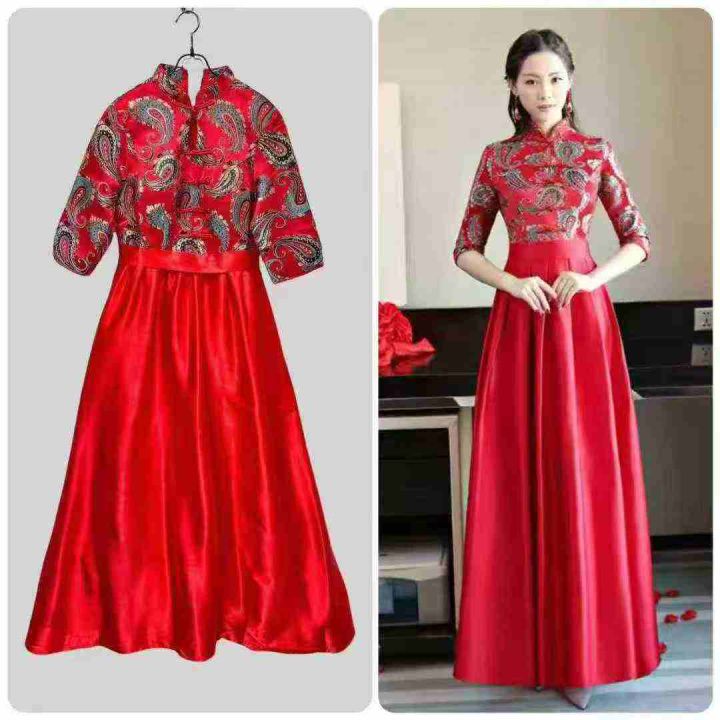[月亮]:9.9清144件(不分货)[月亮]:春秋款中式国风气质晚宴礼服连衣裙[...