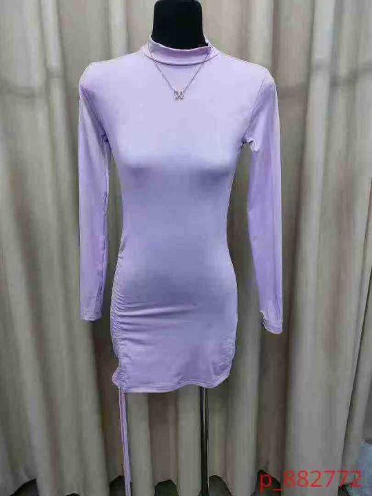 性感紫色长袖连衣裙女春季新款辣妹薄款包臀紧身显瘦圆领打底短裙,数量183件,码数XS-S,全清7.8元 _@_@