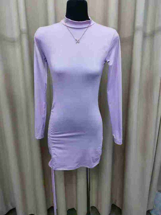 性感紫色长袖连衣裙女春季新款辣妹薄款包臀紧身显瘦圆领打底短裙,数量183件,码数XS-S,全清7.8元