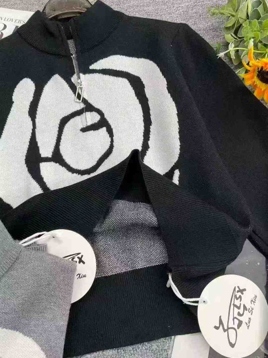 秋季新款高品质品牌原单半拉链芝麻底提花套头毛衣,独立包装带吊牌,单款2色,黑色为主,均码面料软糯Q弹,870件,全清8.9元超低价秒杀!分货加一!