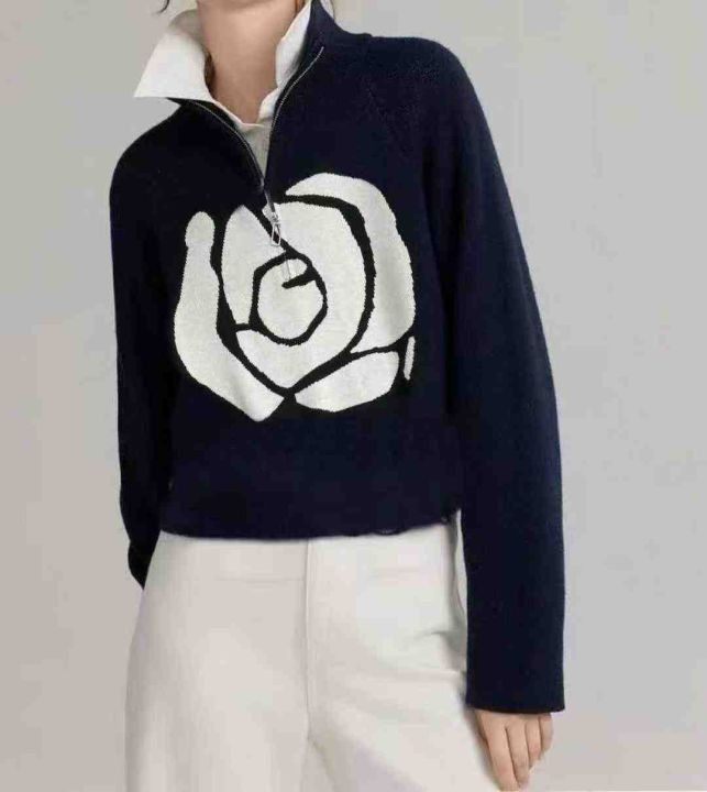 秋季新款高品质品牌原单半拉链芝麻底提花套头毛衣,独...