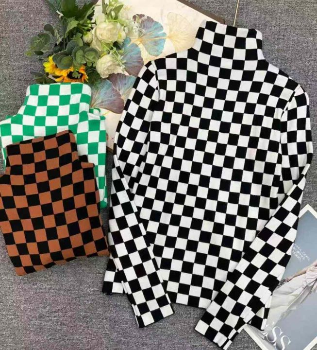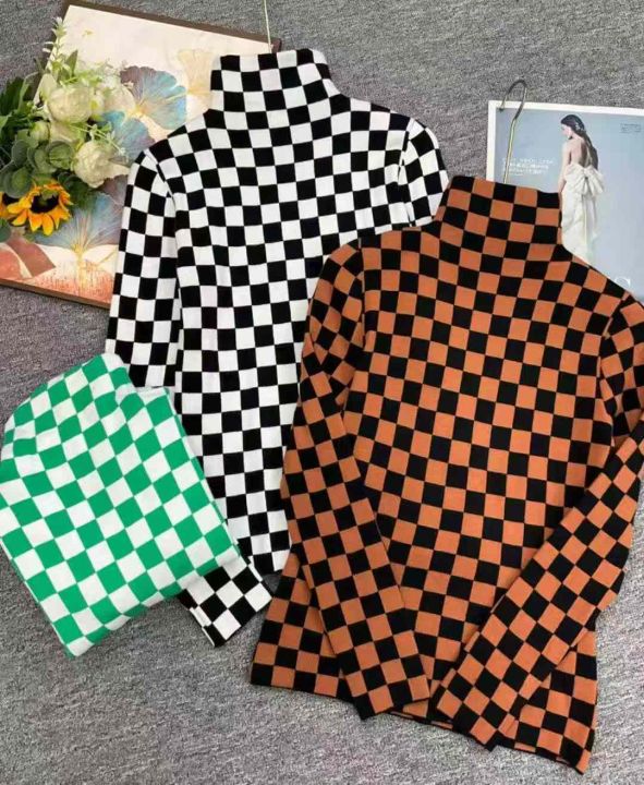 秋冬新款高品质欧洲站复古棋盘格拼色高领弹力修身显瘦包芯纱套头毛衣,独立包装,均码面料软糯舒适弹力大,1000件,全清6.9元超低价秒杀!分货加一!