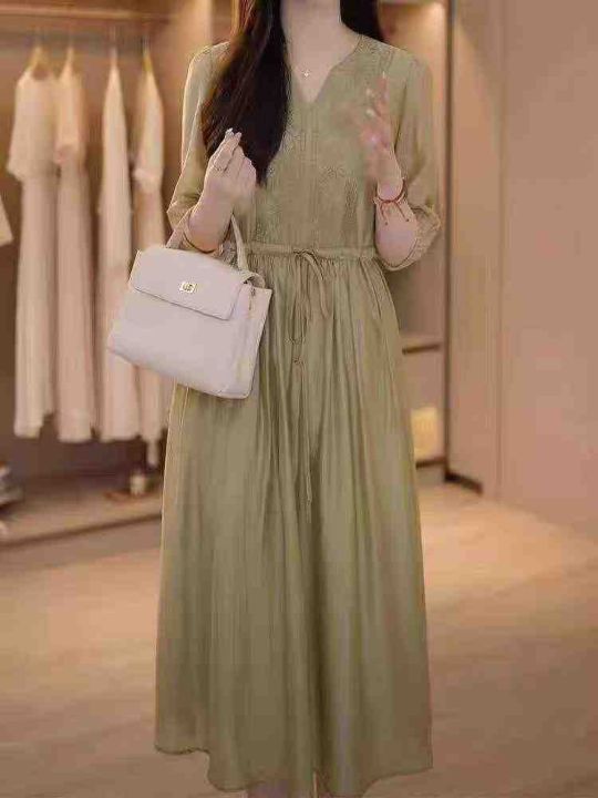 ☕️杭州高品质缎面连衣裙夏季新款中袖气质高端v领短...