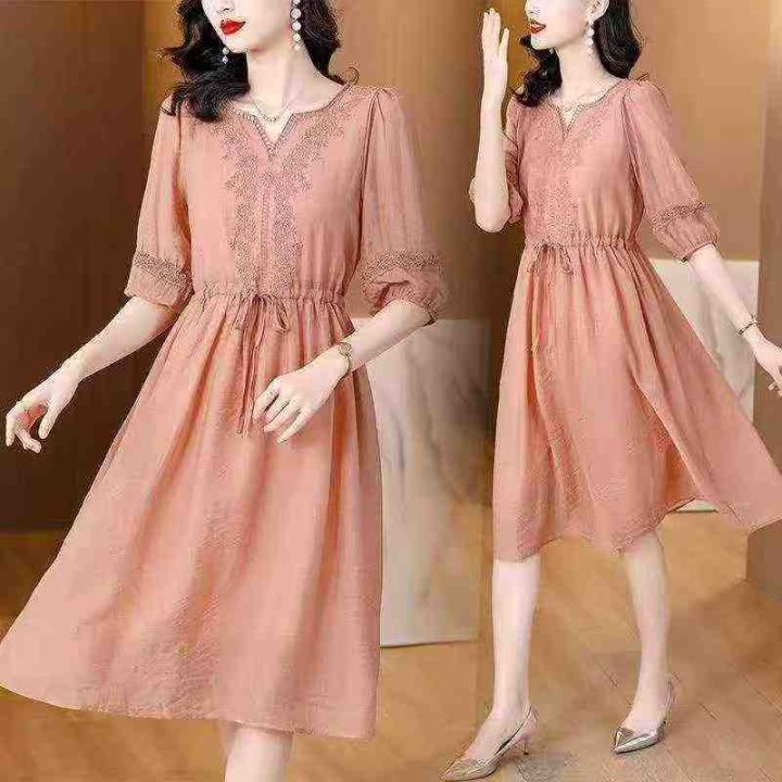 ☕️杭州高品质缎面连衣裙夏季新款中袖气质高端v领短袖中长连衣裙360条全清14.8元分货15.8元,码数M L 宽松版,单款5色,独立包装