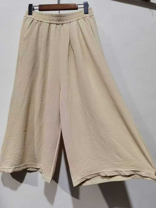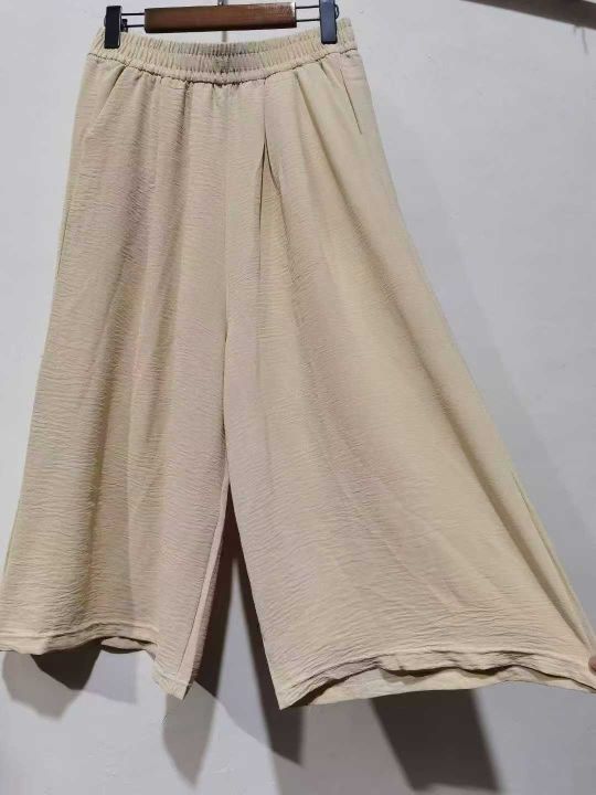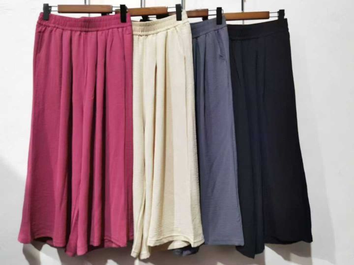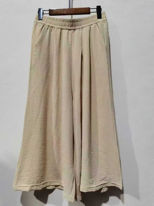 冰丝皱八分阔腿裙裤[玫瑰][玫瑰][玫瑰]S-XL单款10件...