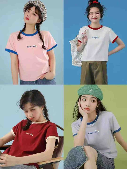 2025夏季新品100纯棉短袖果糖色密度220克t恤女学生宽...