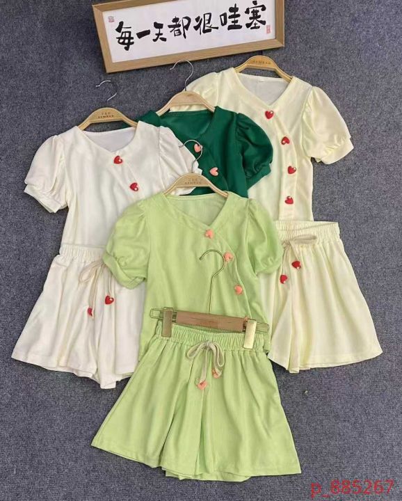 童装华夫格套装942套7.5,华夫格面料,柔软舒适,爱心...