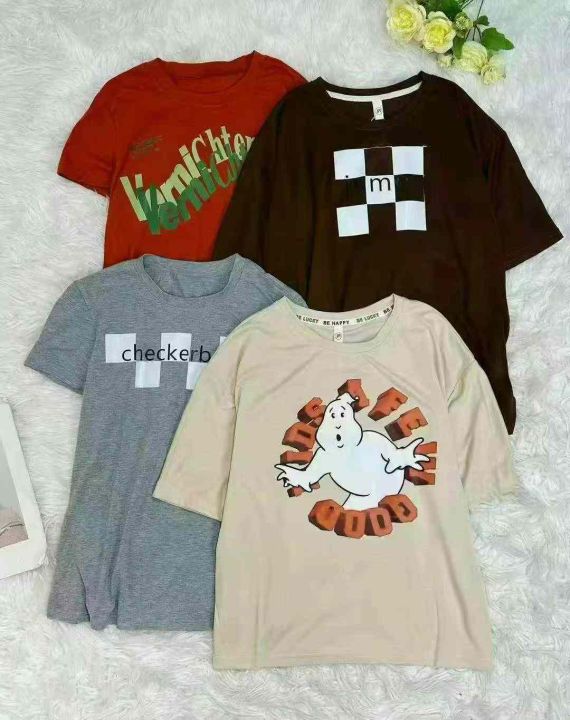 男女同款短袖宽松潮流时尚休闲印花上衣短袖T恤,纯棉面料柔软舒适透气[强],弹力大,图案花色多[色],部分有后领包边设计不易变形,好货靓货,100件起分货➕5.8