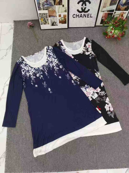 欧美外贸款垂坠质感印花中长款长袖T恤裙衣 数量160件左右 尺码S--2XL 单款两个色印花不同 独立包装 模特图类似供参考 货品干净整洁