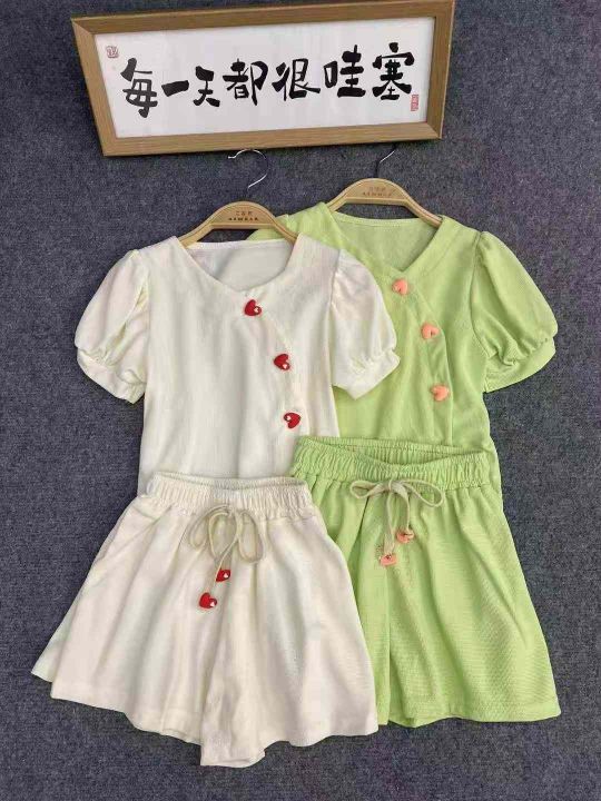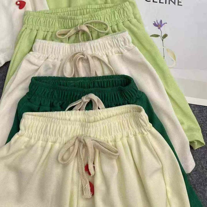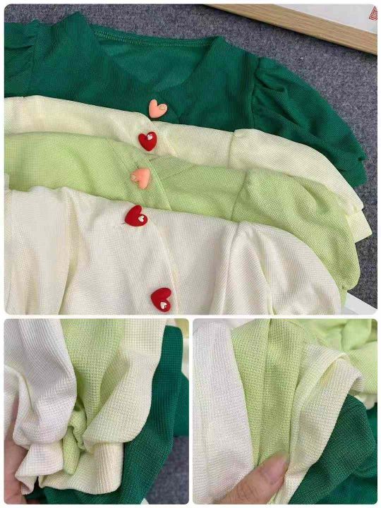 童装华夫格套装942套7.5,华夫格面料,柔软舒适,爱心...