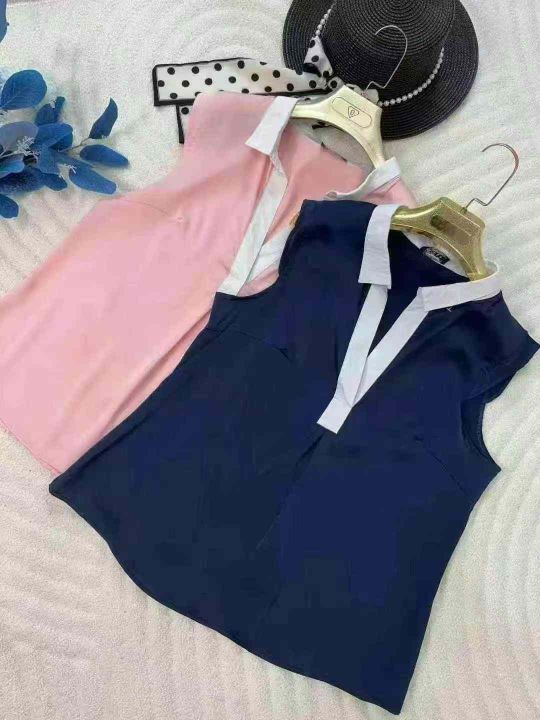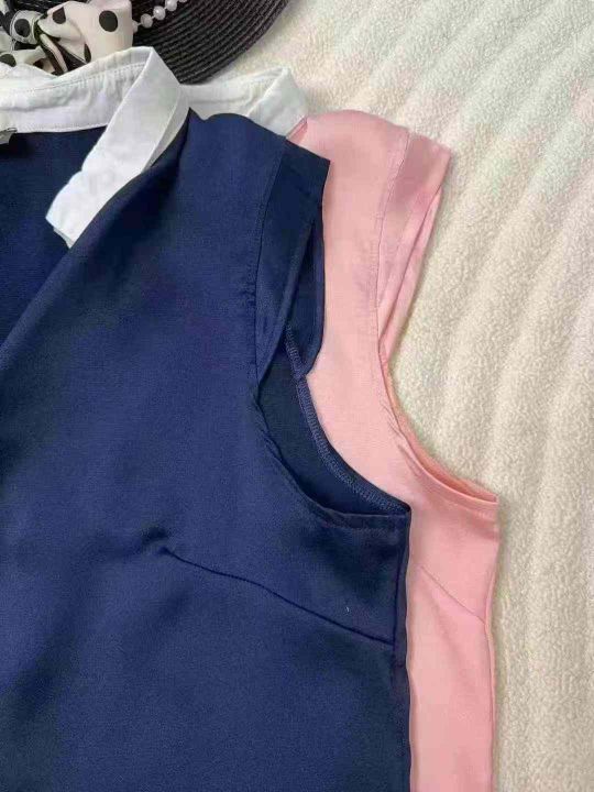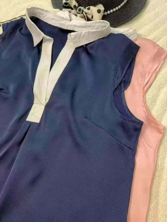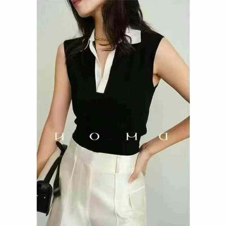 法式复古光泽感缎面polo领简约气质无袖上衣