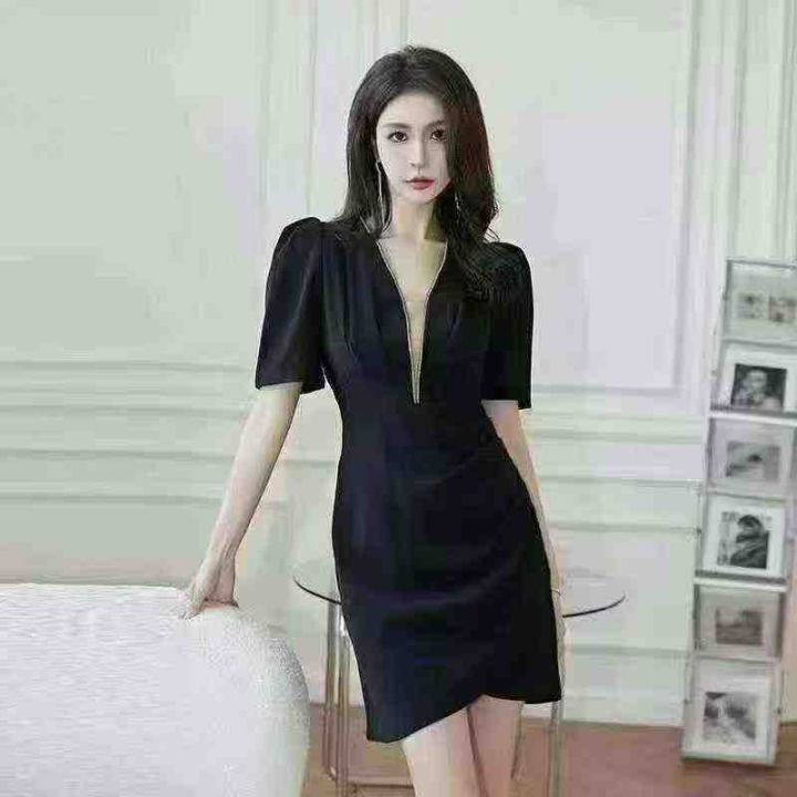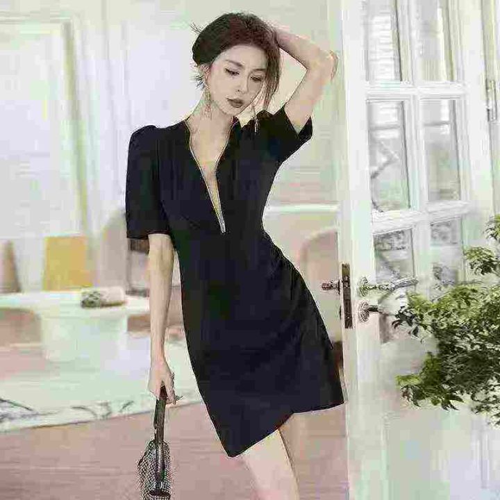 法式赫本风高级感小黑裙V领修身显瘦包臀裙2025夏季新...