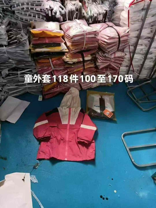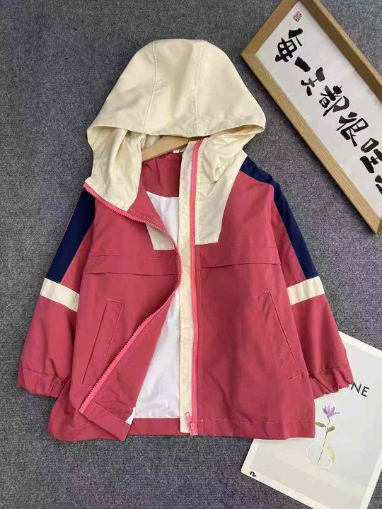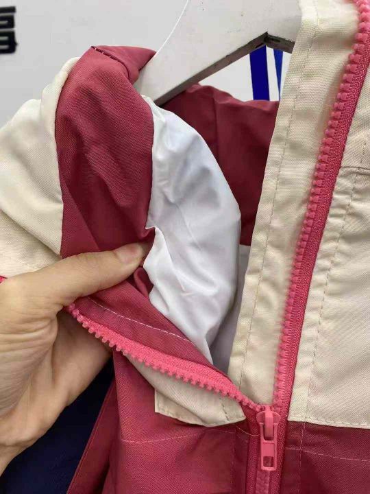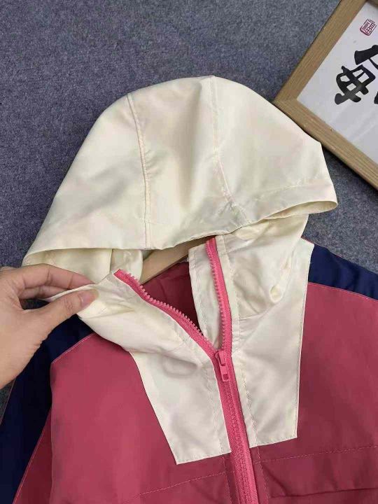 童装连帽冲锋衣104件13.8,有内衬,有口袋,撞色设计...