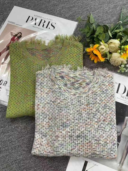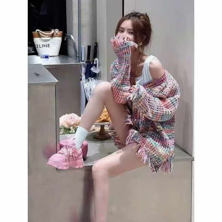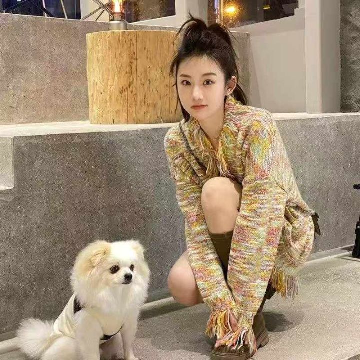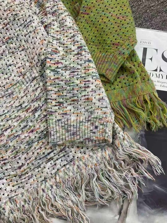 捡漏款,秋季新款法式小香风彩虹编织流苏圆领长袖宽松...