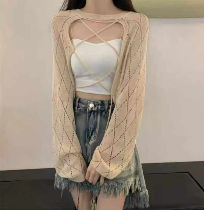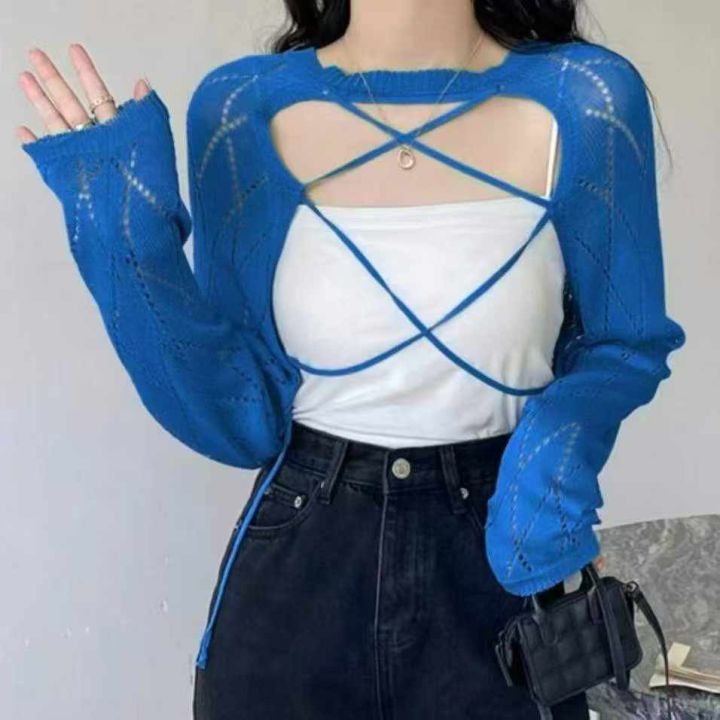 早秋新款纯欲辣妹性感绑带2面可穿设计感小众长袖针织...