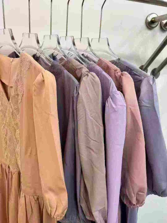 ☕️杭州高品质缎面连衣裙夏季新款中袖气质高端v领短袖中长连衣裙360条全清14.8元分货15.8元,码数M L 宽松版,单款5色,独立包装