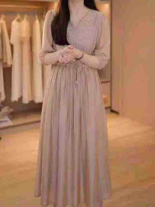 ☕️杭州高品质缎面连衣裙夏季新款中袖气质高端v领短...
