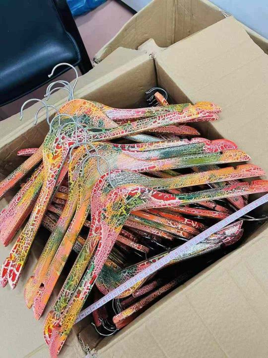 [太阳]全清1元一个!有大货4万个!最新蟒蛇纹订单整款整单的成人男女实木衣架!长度 44 厘米宽度 1 厘米[庆祝][庆祝]非常适合出口外贸!挂成人衣服非常不错[强]!高端油漆定制限量版!一箱 310 个起批!一个星期左右回货!接受预定!适合出口外贸,直播,实体 特卖场!自带长度 0.8 厘米银钩!分货1.2