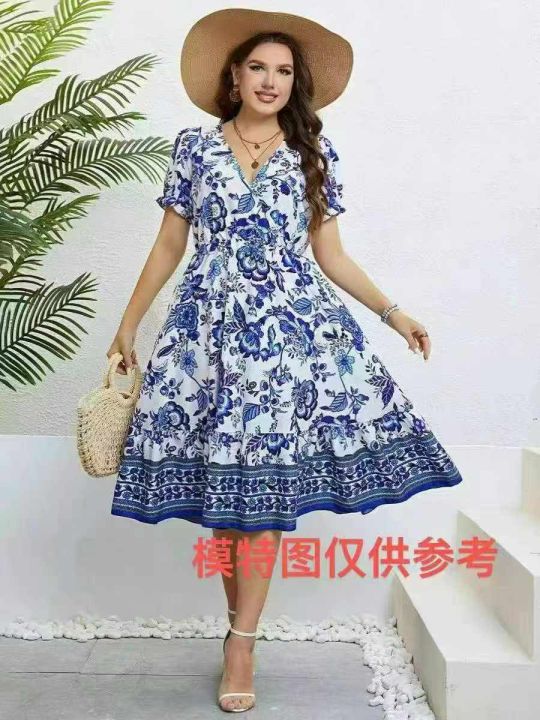春夏短袖连衣裙年轻款时尚清爽亮丽高档修身青花系印花连衣裙,丝滑透气柔软[强],圆领设计凸显锁骨[色],及膝长度视觉拉长腿部比例,青花瓷印花设计显白小众,做工精细,工线整齐,选它[机智],享受一个美妙的夏天,最低价,100件起,分货9.8