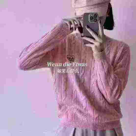 刺绣圆领套头毛衣女长袖秋冬保暖打底小颗粒绒针织衫,独立包装,均码,290...