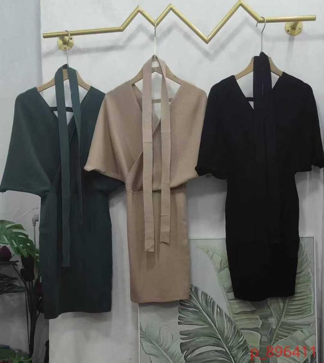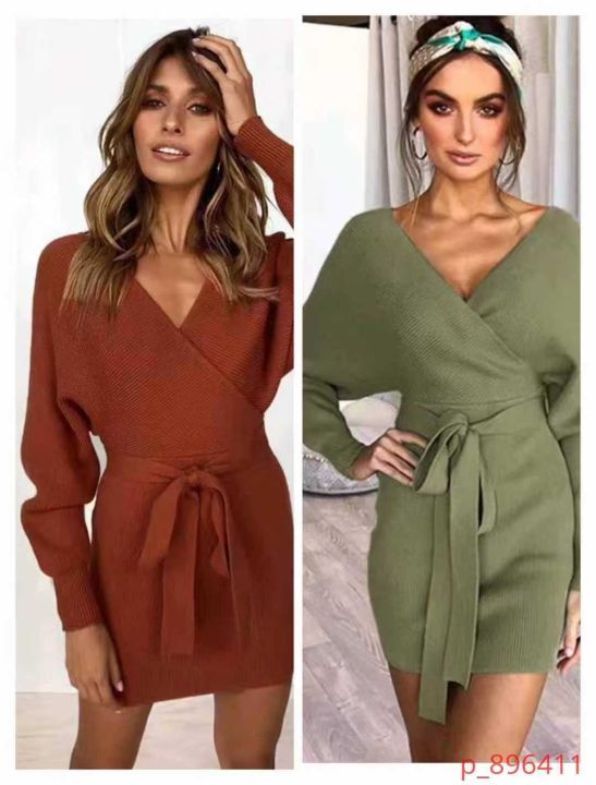 时尚性感女人味V领短袖编蝠袖连衣裙高腰绑带修身显瘦包臀针织毛衣裙,实物短袖,独立包装200件左右,清8.9,分➕1 _@_@