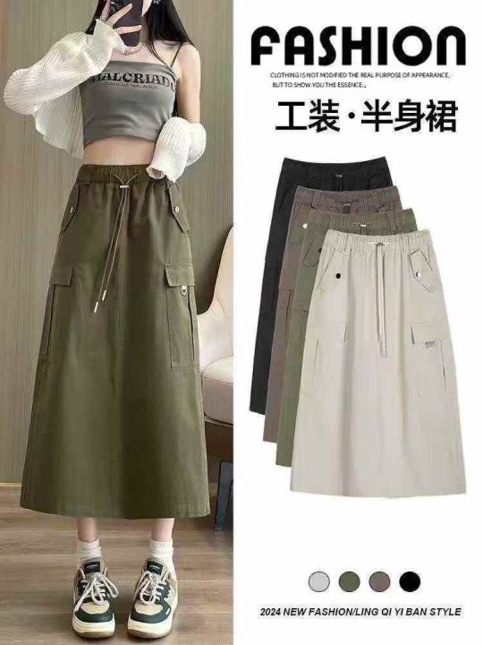 19.8条美式复古工装半身裙,春秋薄款,高级感纯色长裙...