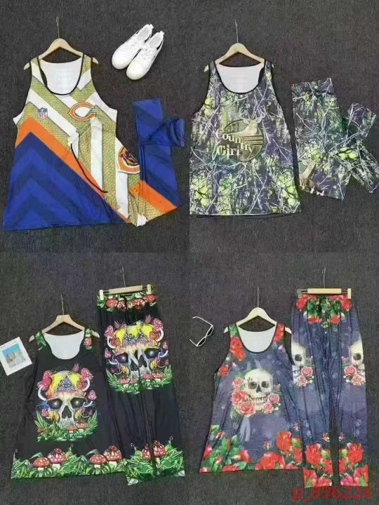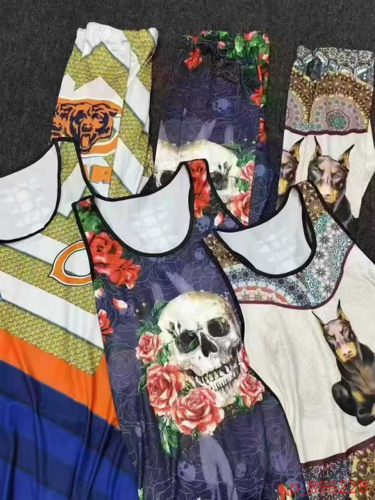 数量:1000套左右,全清价6.8,夏季印花女款瑜伽套装,休闲性感跑步健身背心高腰运动紧身裤大码两件套,码数:S~5XL,独立包装 _@_@