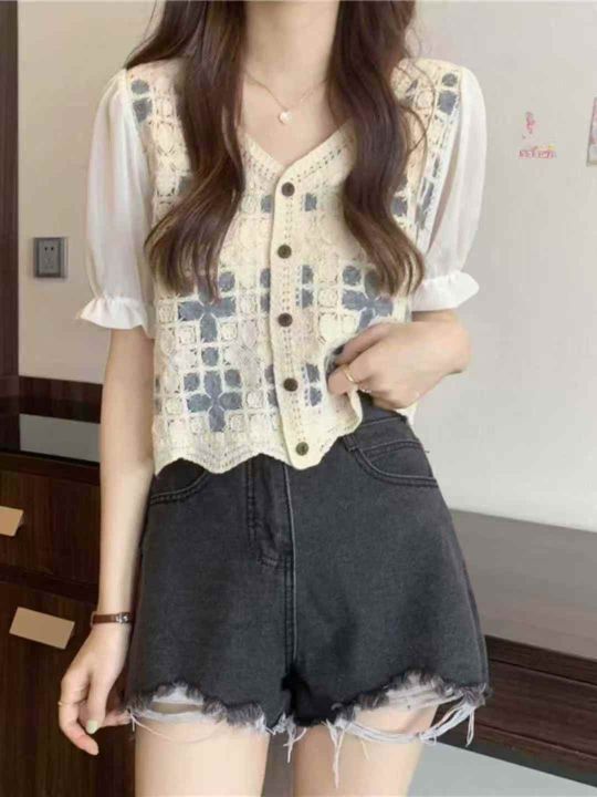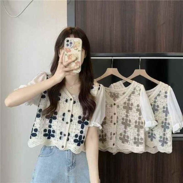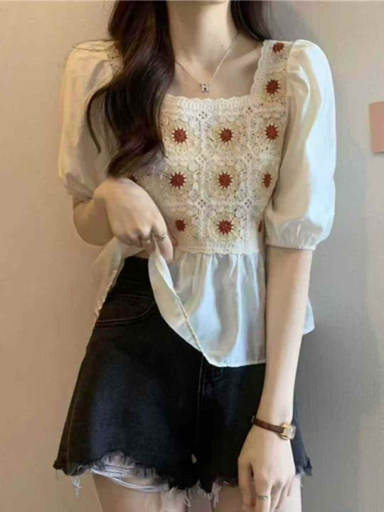 秋冬新款法式气质方领宽松爱心波点提花可爱泡泡袖套头毛衣,独立包装,均码...