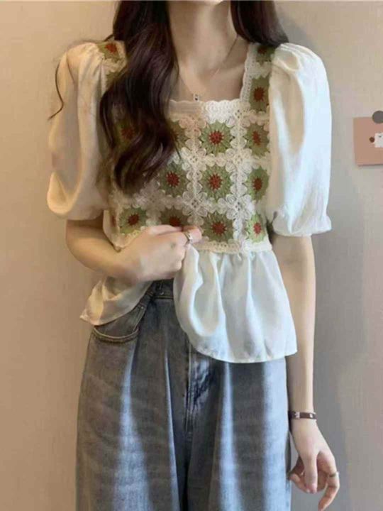 秋冬新款法式气质方领宽松爱心波点提花可爱泡泡袖套头毛衣,独立包装,均码...