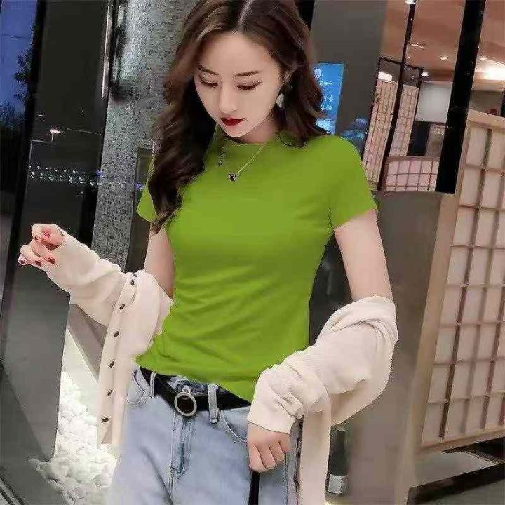 1300件五分袖t恤女修身欧洲站女装2025春新款洋气半高领纯棉显瘦打底衫,整...