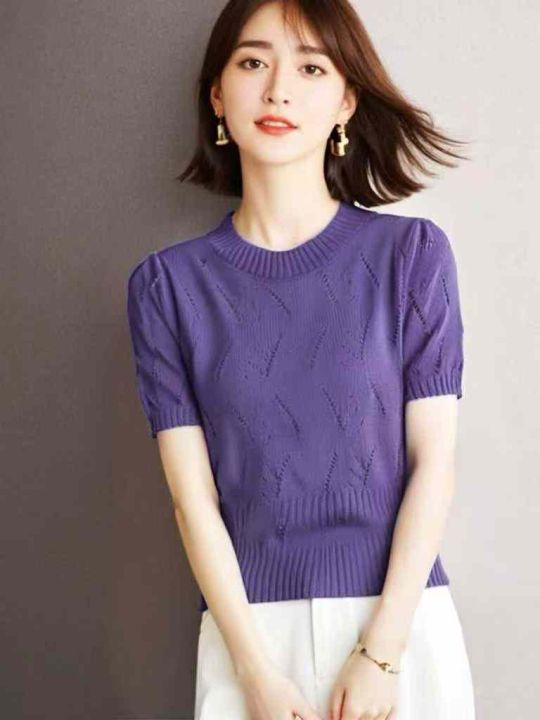 夏季新款镂空时尚洋气冰丝针织短袖,独立包装,均码面...