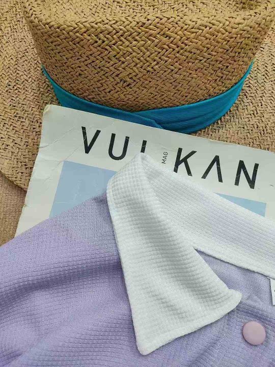 [月亮]:香芋紫棒球服华夫格撞色外套