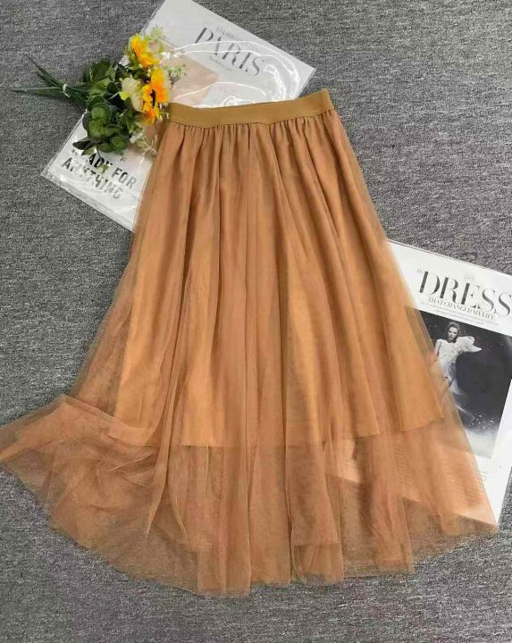 夏秋季新款时尚百搭显瘦百褶大摆裙网纱半身长裙,独立...