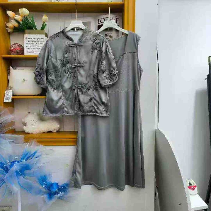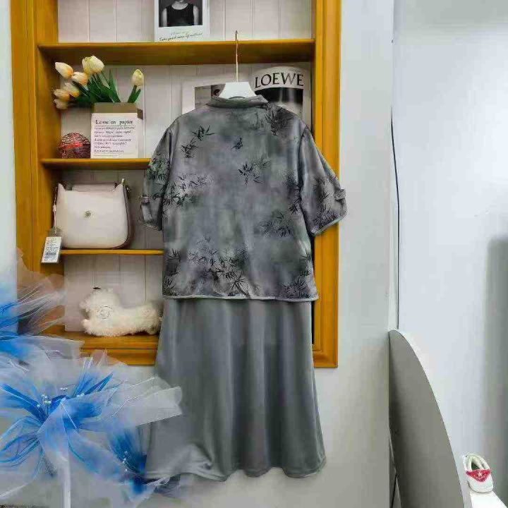 ① 妈妈款新中式国风短袖连衣裙两件套!独立包装,码数M-3XL,数量50套左右,全清8.8元