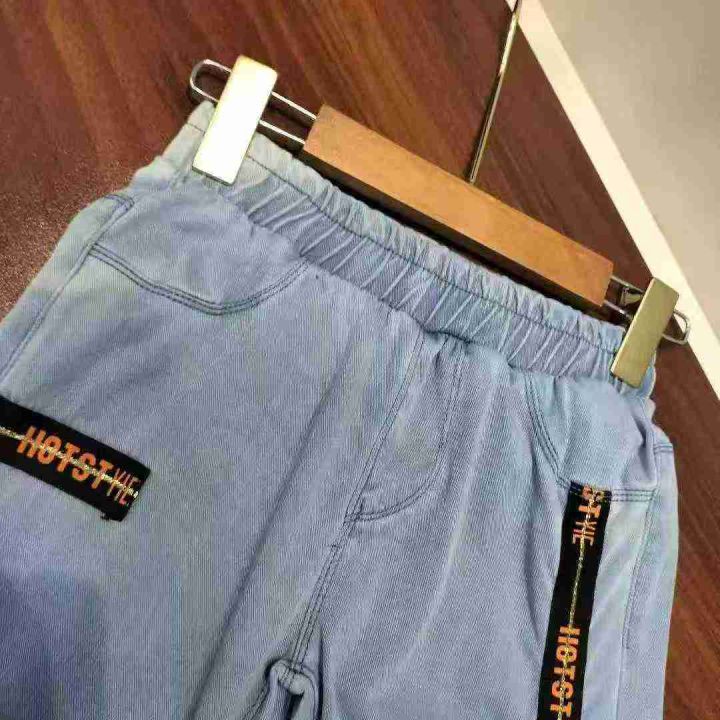 3.5元秒杀[庆祝][庆祝] 男童夏季薄款透气弹力童装中大童休闲牛仔裤,不同位置有色差(如图四)独立包装,码数16-18-20-22,数量100件左右$