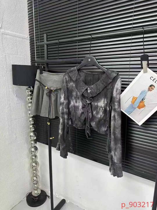 编号:[20033] ¥49.9元 女装/女士服装 上衣 衬衫/长袖小衫/设计感 设计感 两件套:V领荷叶边扎染上衣➕鹿皮绒半身裙鹿皮绒V领荷叶边扎染两件套散批Two-piece Set: V-neck Flounce Tie-dye Top + Suede Skirtطقم من قطعتين: بلوزة V-neck مزركشة + تنورة جلد الغزال 库存:有货