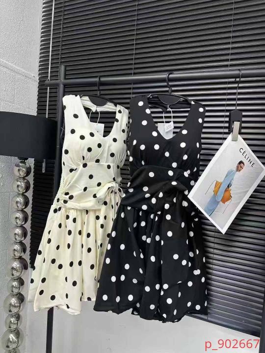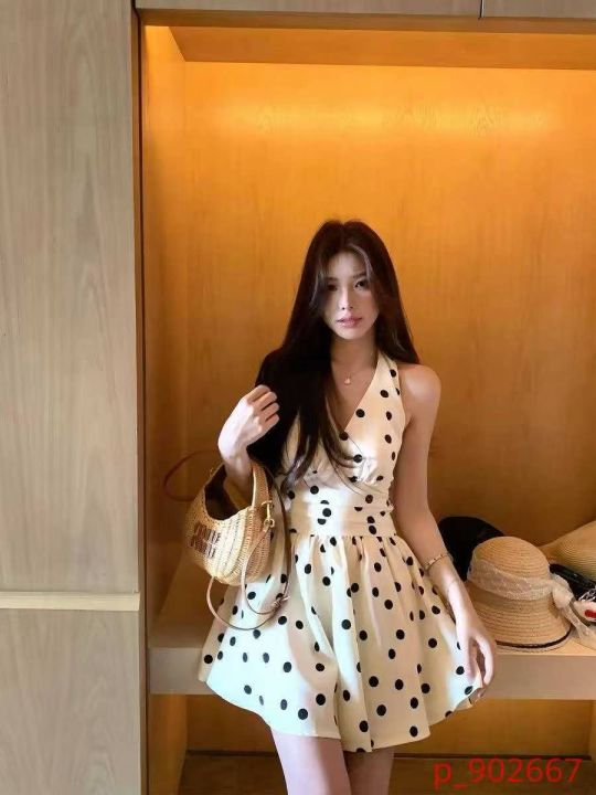编号:[20121] ¥28元 女装/女士服装 裙子 连衣裙 吊带裙/背带裙/背心裙 波点挂脖连衣裙辣妹带胸垫,蝴蝶结可以取下来波点挂脖就剩白色Last 30+ pieces clearance negotiable, polka dot halter dress with built-in bra [8927] wholesale 28 RMB/piece⚠️Only white left, bow can be removedآخر 30+ قطعة مفاوضات التصفية، فستان هالتر منقط بحمالة مع حمالة صدر مدمجة [8927] جملة 28 يوان/قطعة⚠️فقط الأبيض متبقي، يمكن إزالة الربطة 库存:30多件