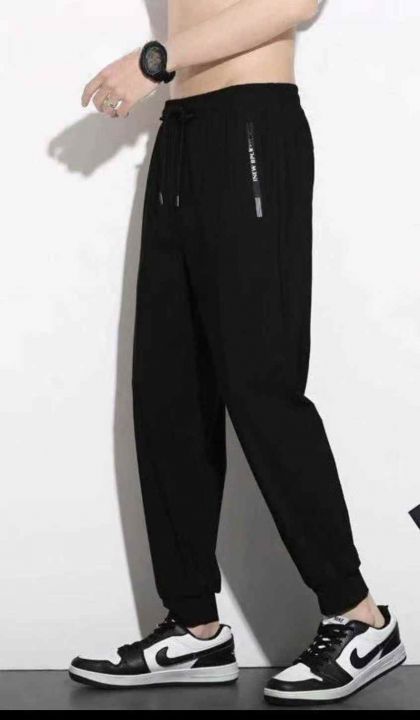 夏季薄款直贡呢弹力速干运动休闲裤,口袋字母拉链没计,497件,直筒和束脚...