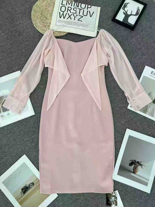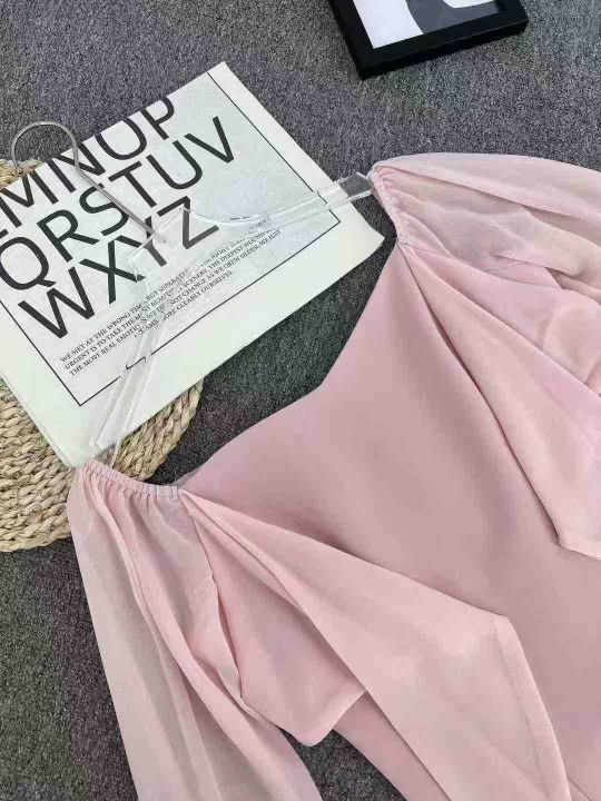 ☕️韩版女装甜美蝴蝶结雪纺泡泡袖拼接气质方领修身中长款连衣裙女春150件全清13.8元,码数S到XL,正品独立包装,高品质单款粉色~