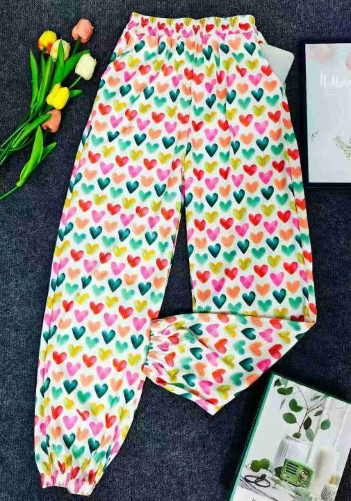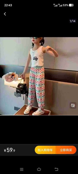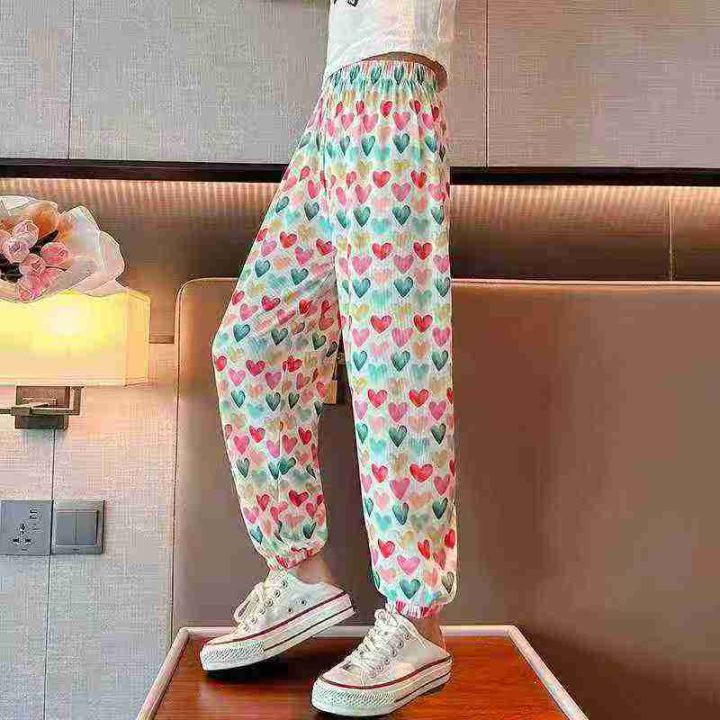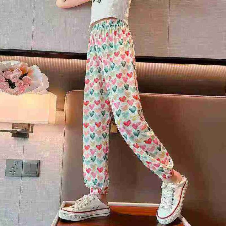 中大童薄款束脚印爱心防蚊弹力垂感松紧腰童装冰丝裤,...
