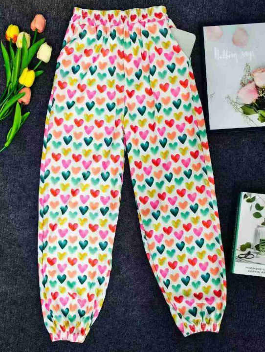 中大童薄款束脚印爱心防蚊弹力垂感松紧腰童装冰丝裤,190件,1-7码,独立包装吊牌,全清4.9元
