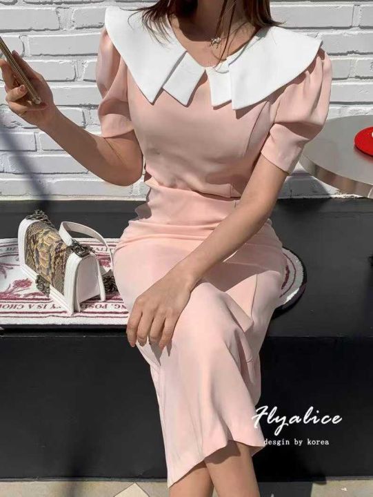 ☕️法式温柔风粉色收腰显瘦短袖连衣裙女夏季新款气质收腰显瘦中长裙210件全清13.8元,码数S到XL,全部带内衬,高品质精品独立包装。