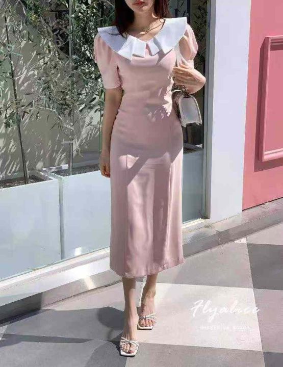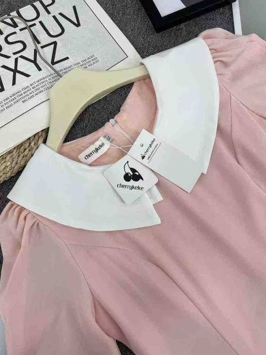 ☕️法式温柔风粉色收腰显瘦短袖连衣裙女夏季新款气质收腰显瘦中长裙210件全清13.8元,码数S到XL,全部带内衬,高品质精品独立包装。