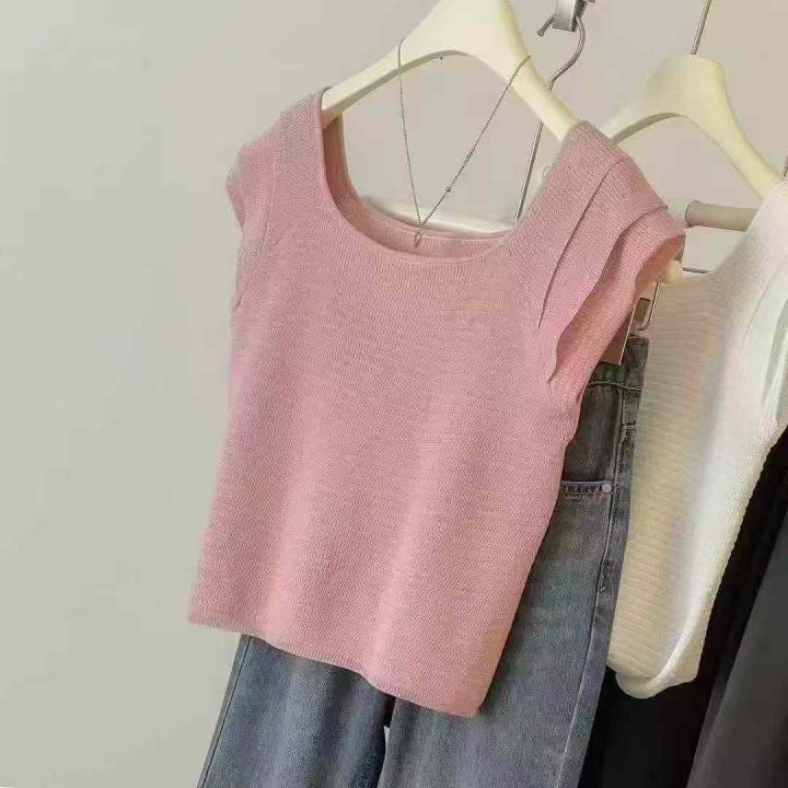 小飞袖设计感小众显瘦针织短袖上衣,整款两色,均码,1500件,清5.9,分➕1